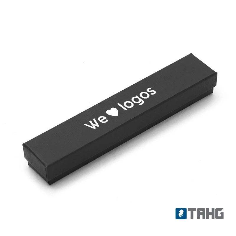 Caja individual para bolígrafos, ideal para presentar tu regalo de manera sofisticada y profesional. Diseñada en papel color negro y un tamaño de 16,3 x 3 x 2 cm, es compatible con la mayoría de las lapiceras estándar. Ligera y resistente, es excelente para aumentar el valor percibido del regalo.