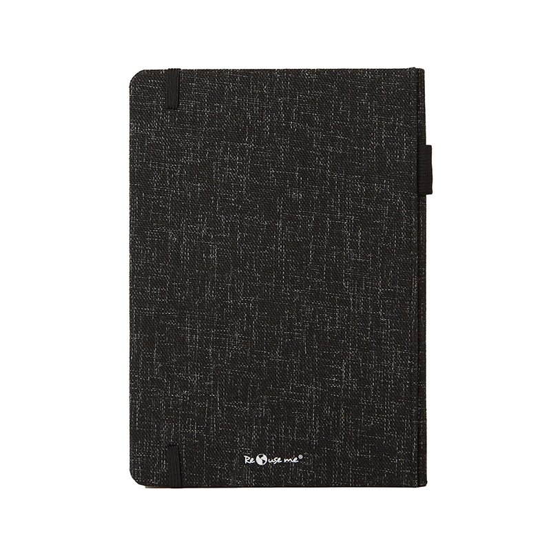 Cuaderno de tapa dura confeccionado con material RPET, hecho con botellas de plástico reciclado. Con 96 hojas lisas de 96 gramos. Papel a base de piedra de escritura suave, más duradero y resistente que el papel tradicional. Para realizar este papel no se han talado árboles, ya que está confeccionado a partir de Polietileno y polvo de piedras. Cuenta con cierre elástico, una cinta marcadora y una etiqueta. 96 hojas de 96 g. Medidas: 14,8 x 21cm. ReUseMe.