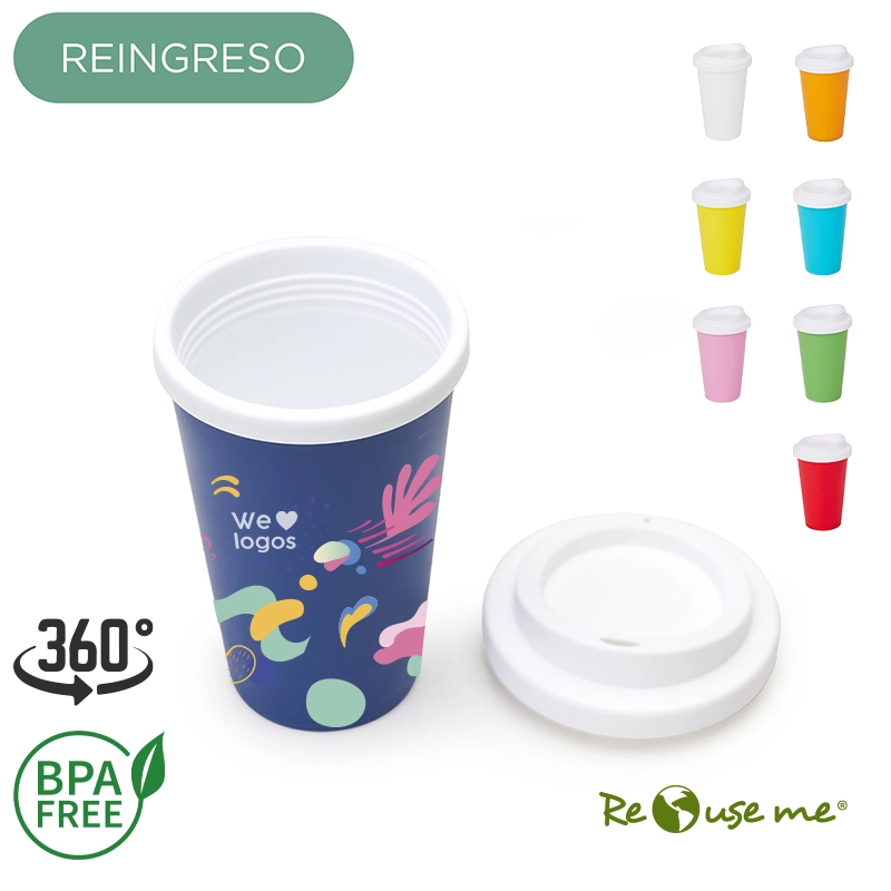 Jarro térmico reutilizable de 400ml, apto para bebidas calientes o frías. Está realizado 100% en polipropileno, un plástico reciclable. Ideal para recargar el té o café ¡y reducir el consumo de plásticos de un solo uso! Producto apto para el uso en lavavajillas, no apto para microondas. Producto aprobado por el I.N.A.L. para el contacto con alimentos. Medidas: 14,5cm x 10 cm. Capacidad: 400ml. ReUseMe