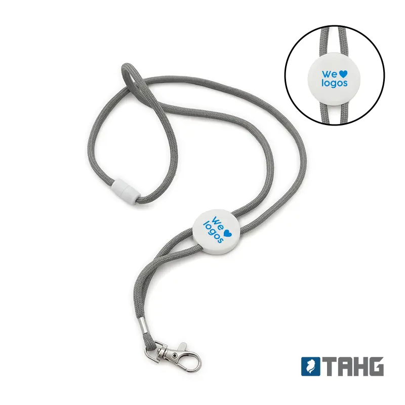 Accesorio confeccionado con un resistente cordón, cuenta con un gancho metálico que permite enganchar tus llaves, tarjetas de identificación o cualquier otro objeto. Ideal para mantener tus llaves y accesorios organizados y al alcance en todo momento, ya sea en el trabajo, en eventos o durante tus actividades diarias. Medidas: 50 x 3 x 0,6 cm. El producto se presenta en una bolsa de PLA 100% compostable.
