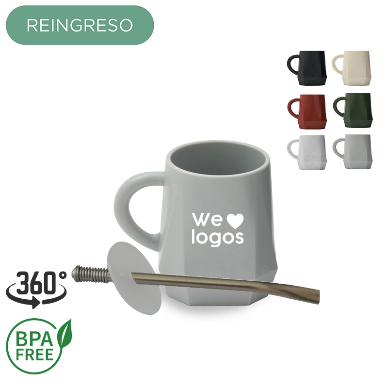 Mate plástico de poliestireno de un asa. Incluye bombilla de acero inoxidable con disco plástico autolimpiante saca-yerba. Medidas: Altura 8 cm x Base 6cm x Boca 6 cm. Colores: Negro, verde militar, marfil y ladrillo. Producto libre de BPA.