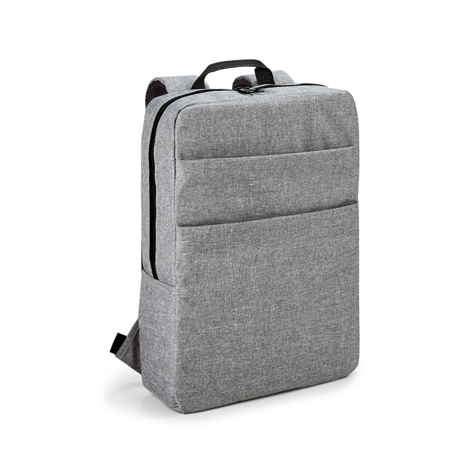 Mochila porta notebook fabricada en poliéster 600D de alta densidad. Dispone de un compartimento con separación acolchada para la computadora de hasta 15.6”, además de 2 bolsillos frontales. Interior forrado y acolchado. Parte trasera y asas acolchadas.