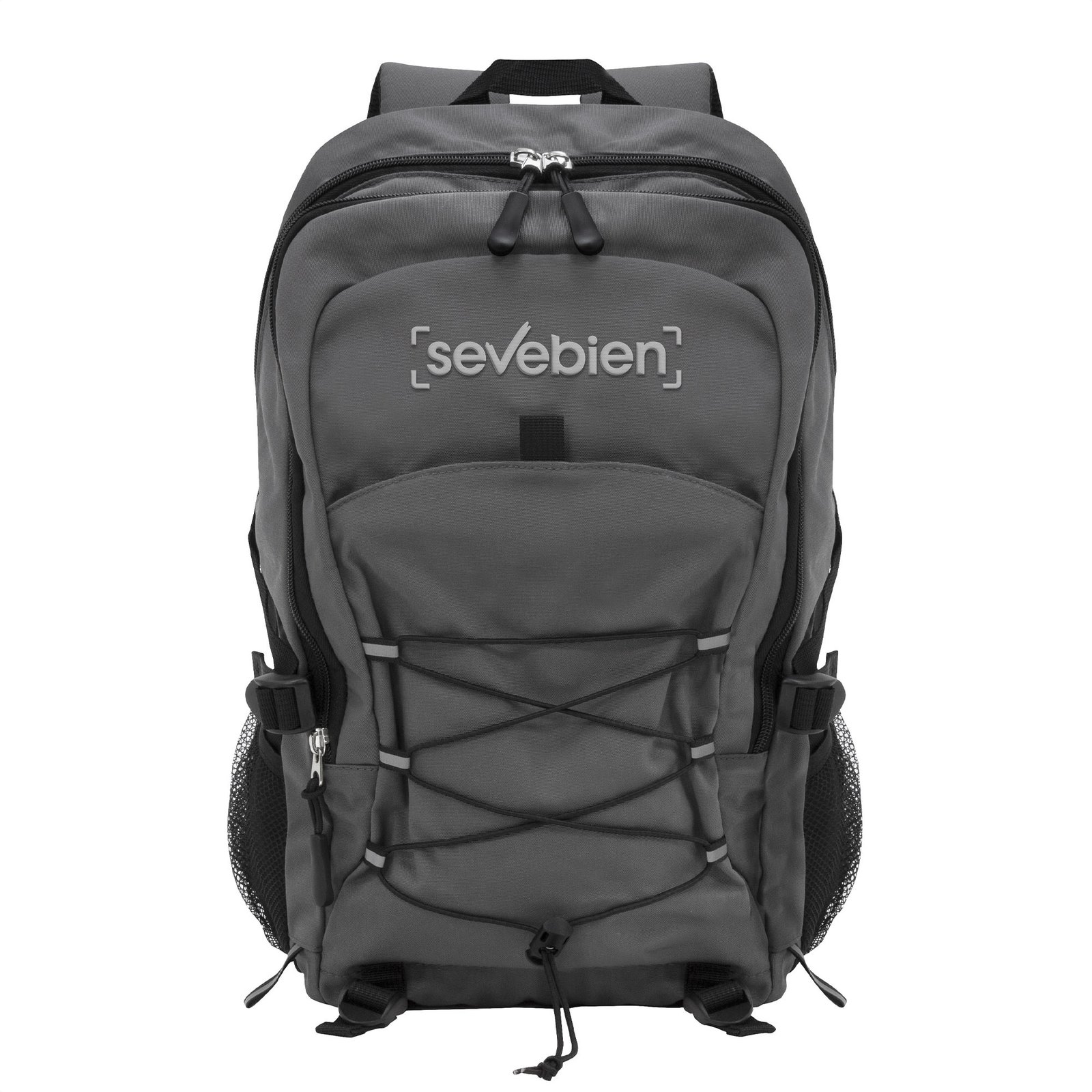 28 x 41 x 17 cm. Capacidad 19 litros. Algodón y Poliester. Mochila outdoor. Múltiples espacios para transportar objetos. Compartimento principal con bolsillo elastizado. Bolsillo frontal con cierre, cordón elástico cruzado ajustable y dos bolsillos de red laterales y cintas de amarre. Detalles reflectivos. Cierres metálicos con tiradores de goma. Correas regulables y espalda acolchadas.