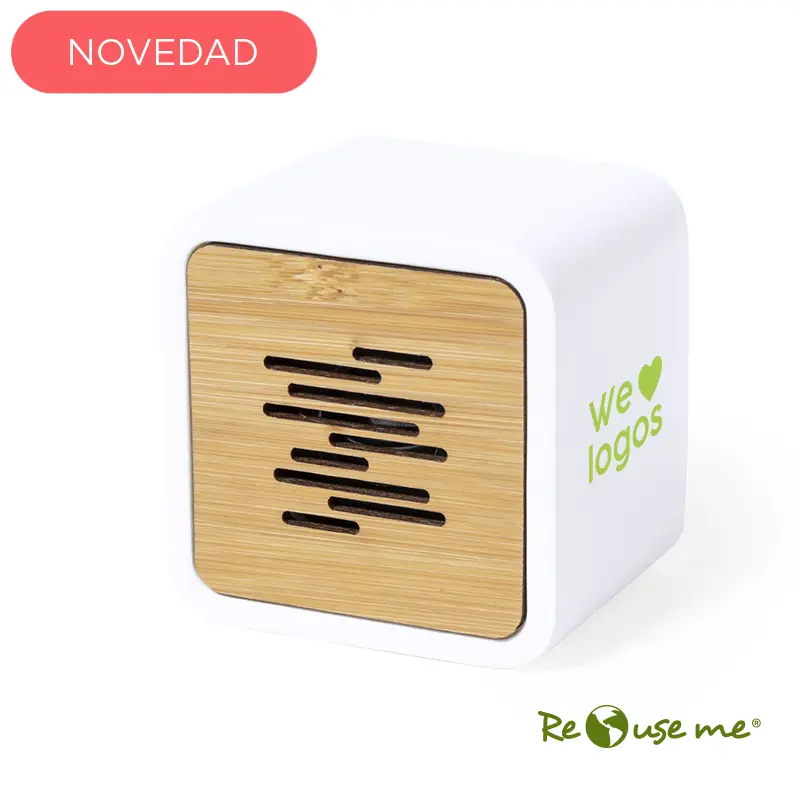 Parlante portátil fabricado en bambú y PLA compostable, combinando tecnología avanzada con materiales sustentables para ofrecer una experiencia de sonido única y amigable con el medio ambiente.