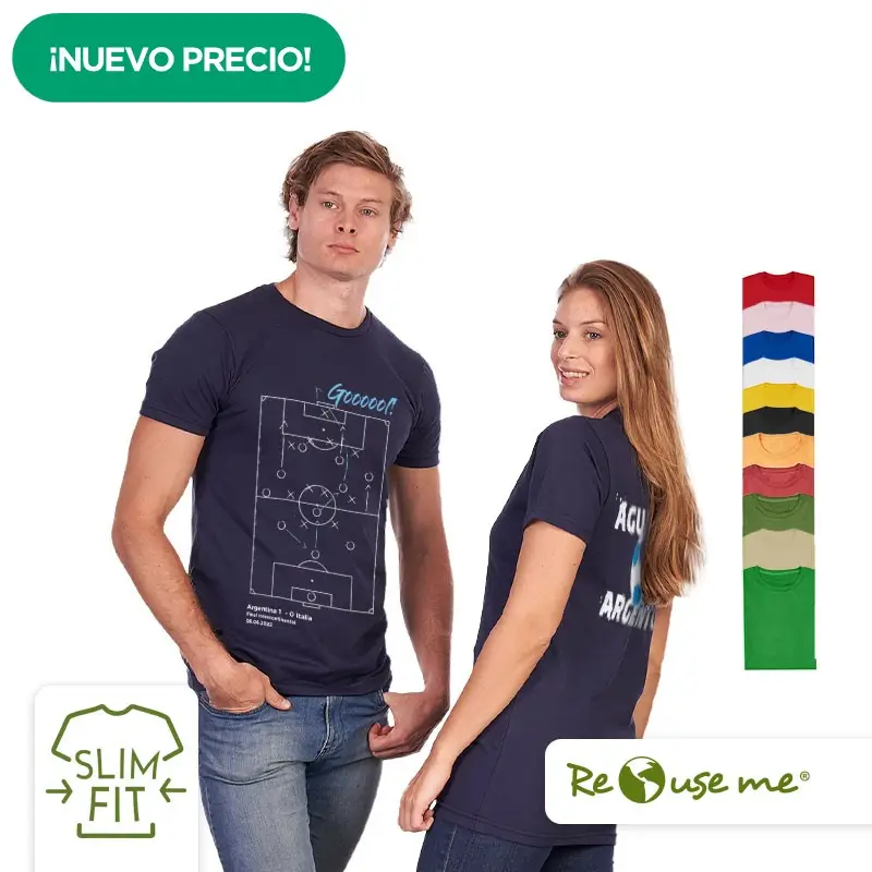 Remera de manga corta unisex en corte slim fit, con cuello redondo en ribb de algodón. Esta prenda está confeccionada 100% en algodón 24/1 peinado, un recurso ecológico renovable y sostenible. Ella mide 1.68m, pesa 60 kilos y está usando talle M. Él mide 1.88m y está usando talle L. Recomendaciones de uso para cuidar tu prenda: Lavar a máquina a 30°. No Blanquear. No secar en máquina. Planchar suavemente, evitando el área estampada. ReUseMe